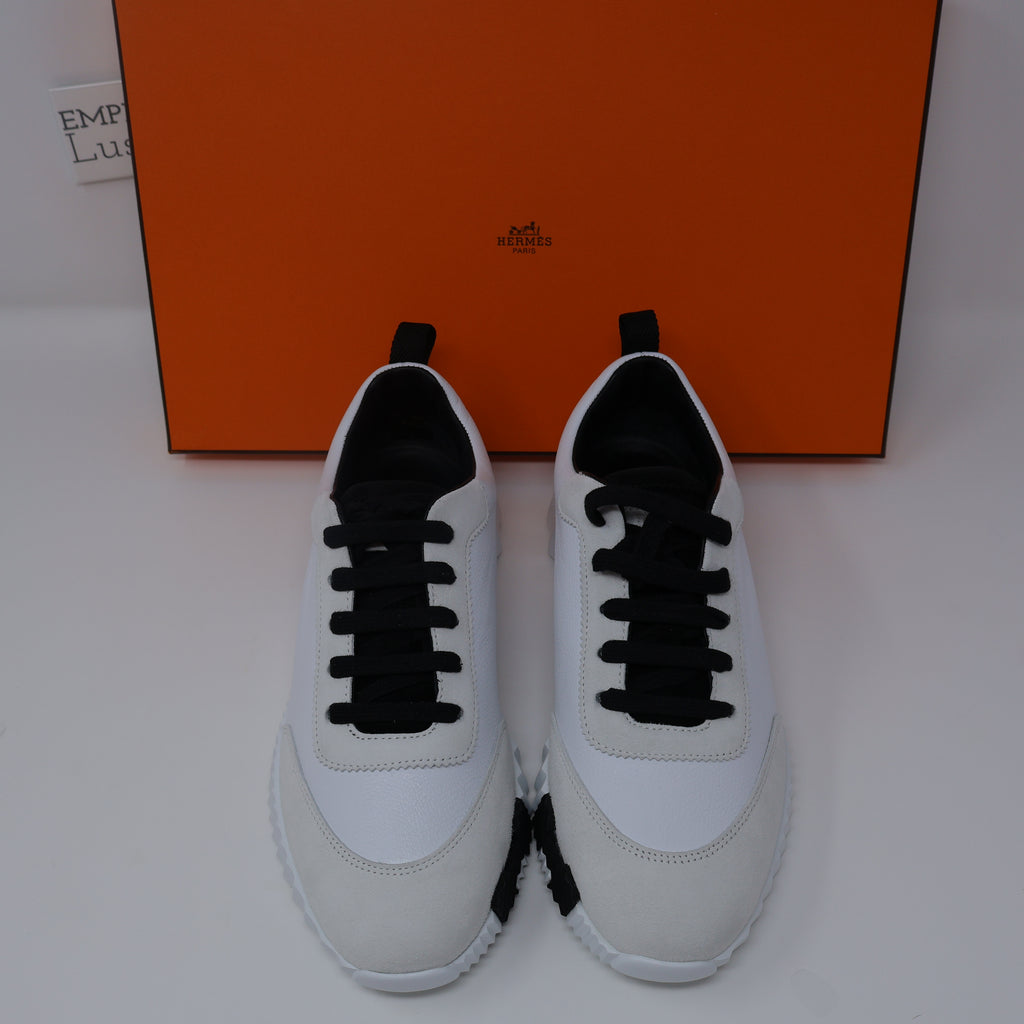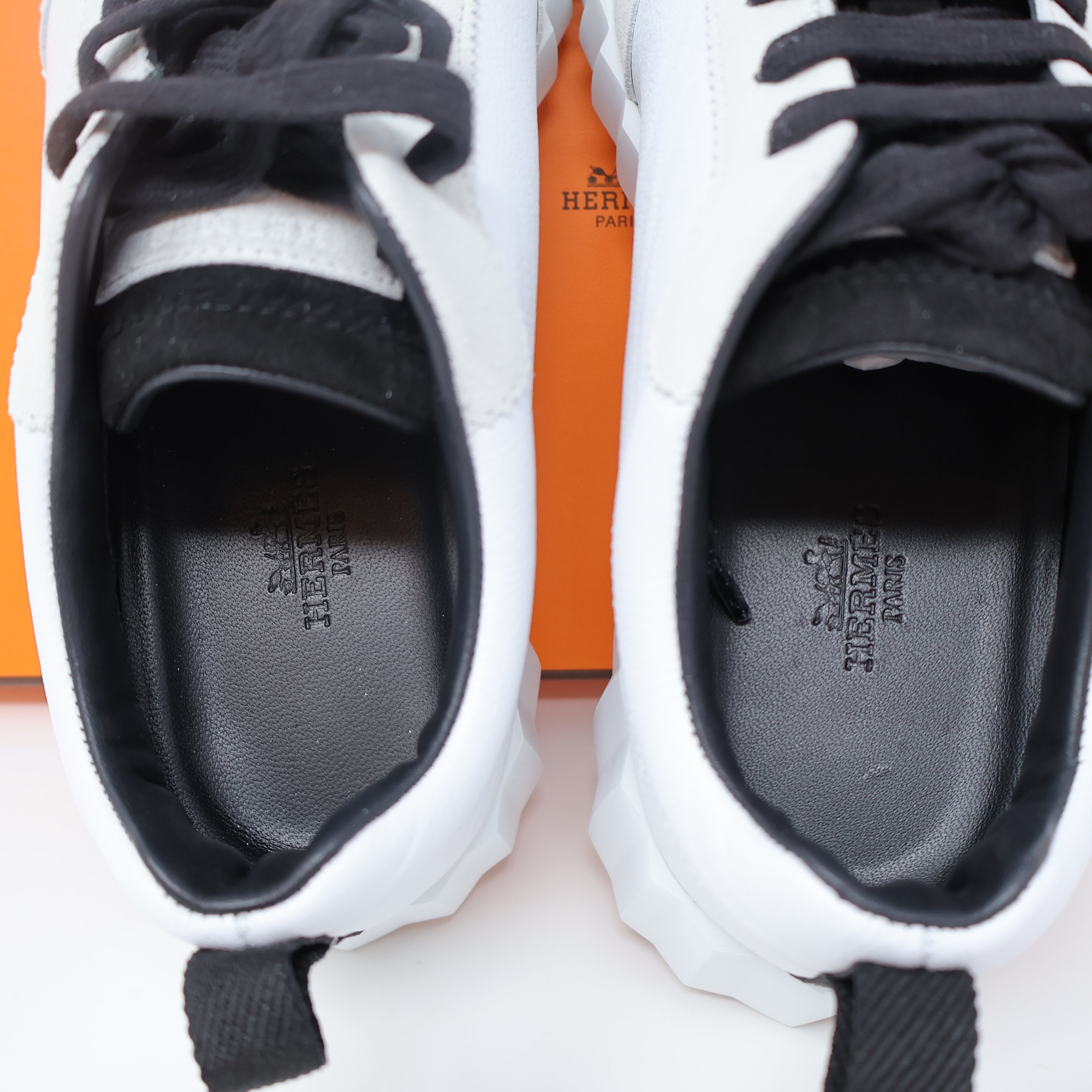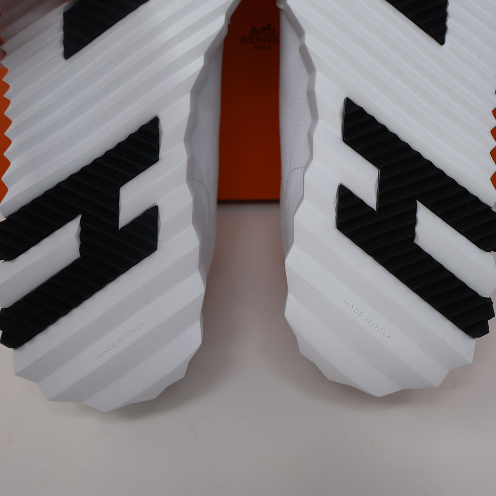 38 NEW HERMES Bouncing Sneakers Blanc/Noir Calfskin and Suede Goatskin