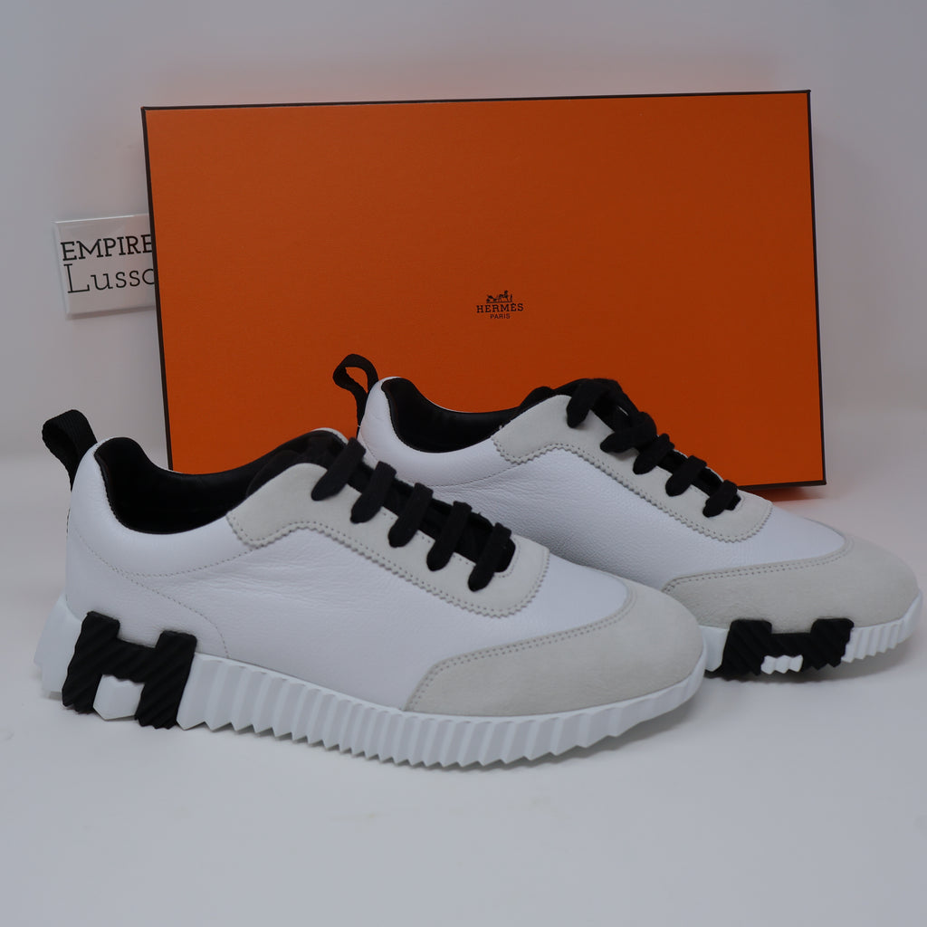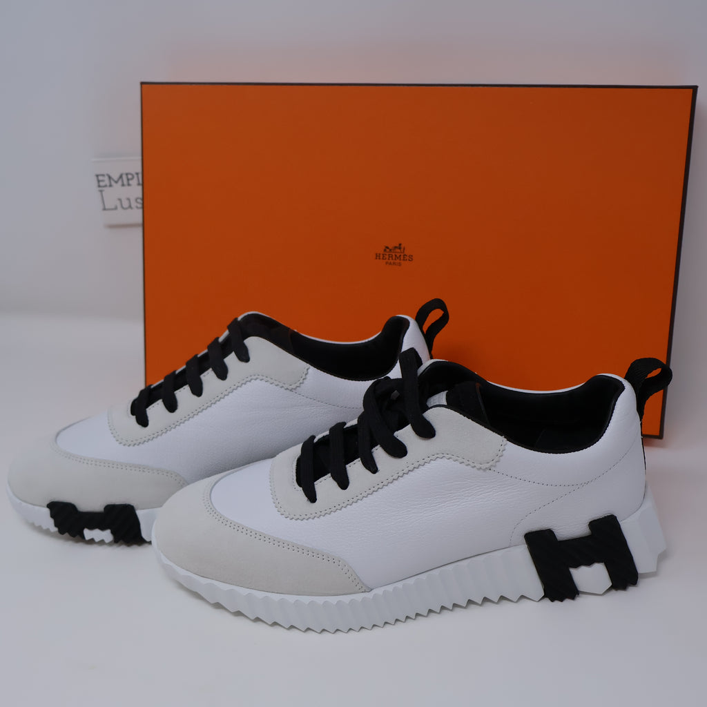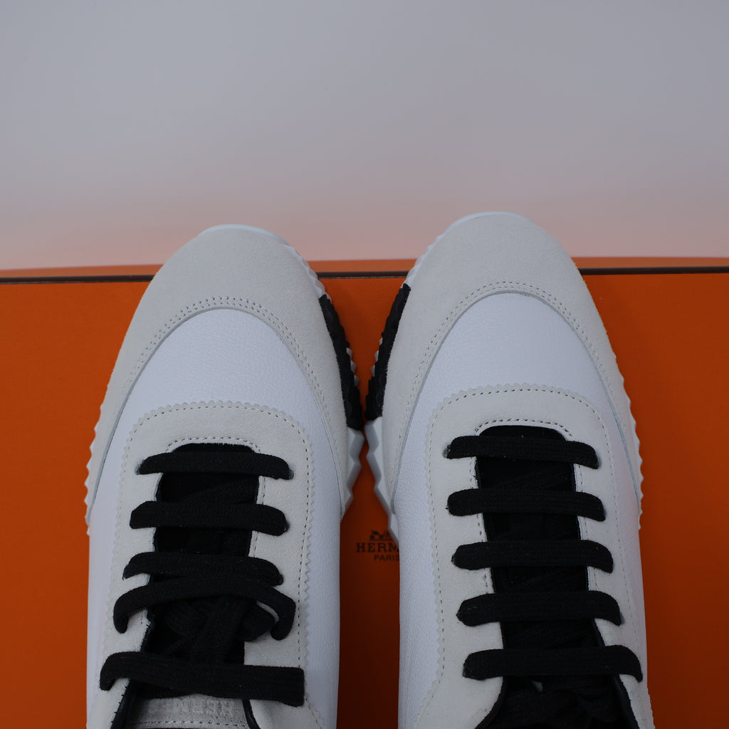 38 NEW HERMES Bouncing Sneakers Blanc/Noir Calfskin and Suede Goatskin