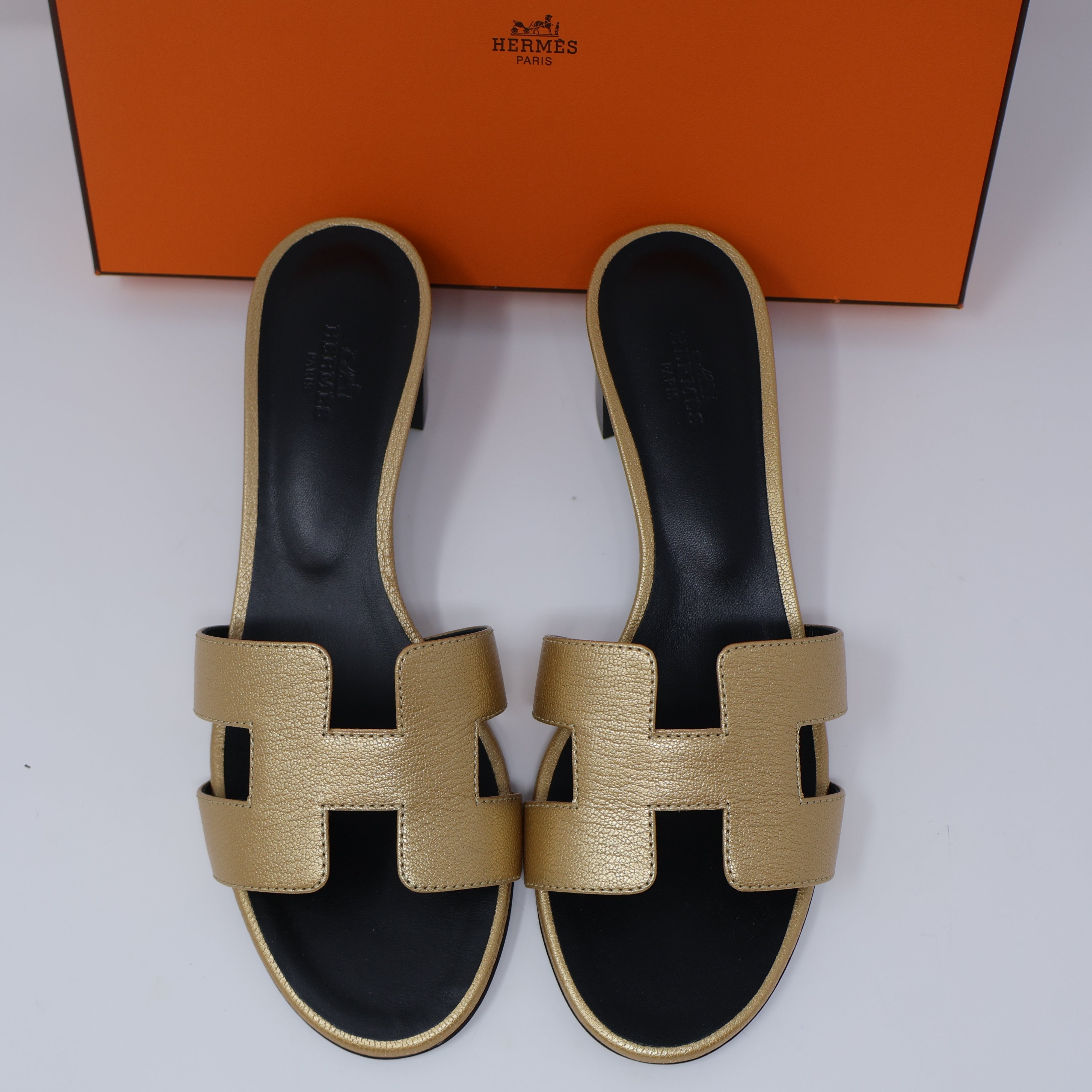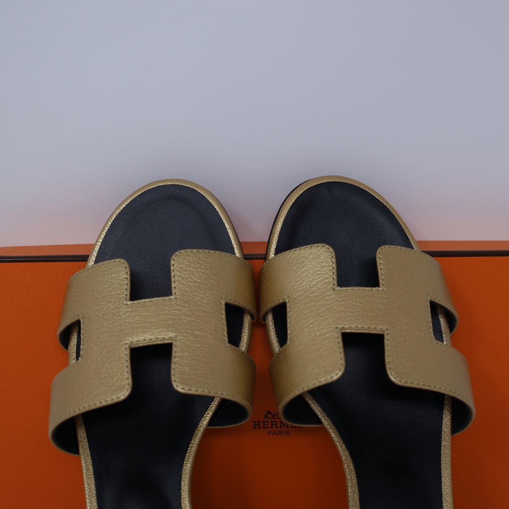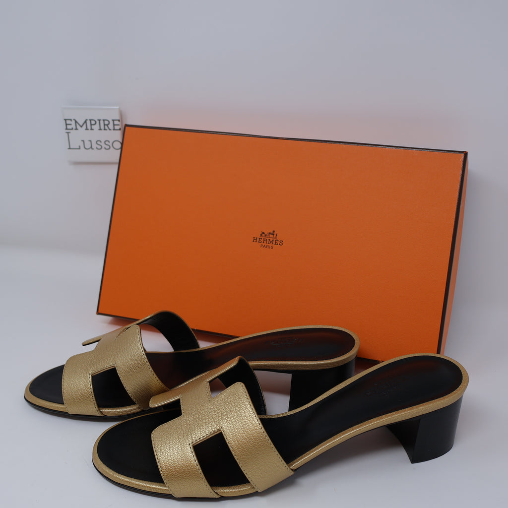 38 HERMES OASIS H SANDALS HEEL CLASSIC Gold Doré Metallic Chevre Chamkilight