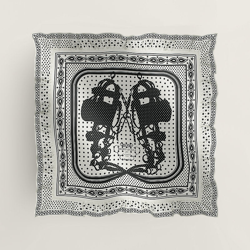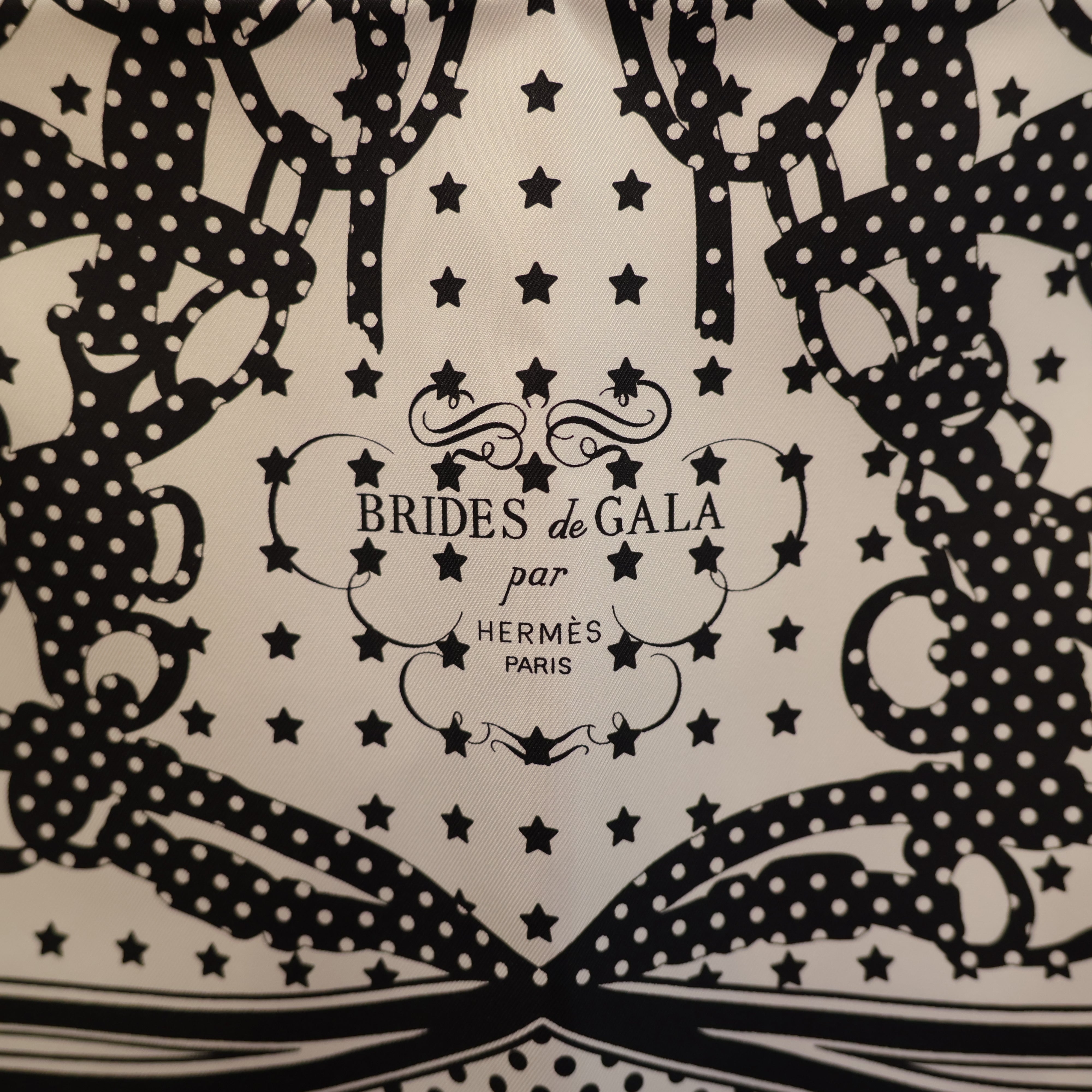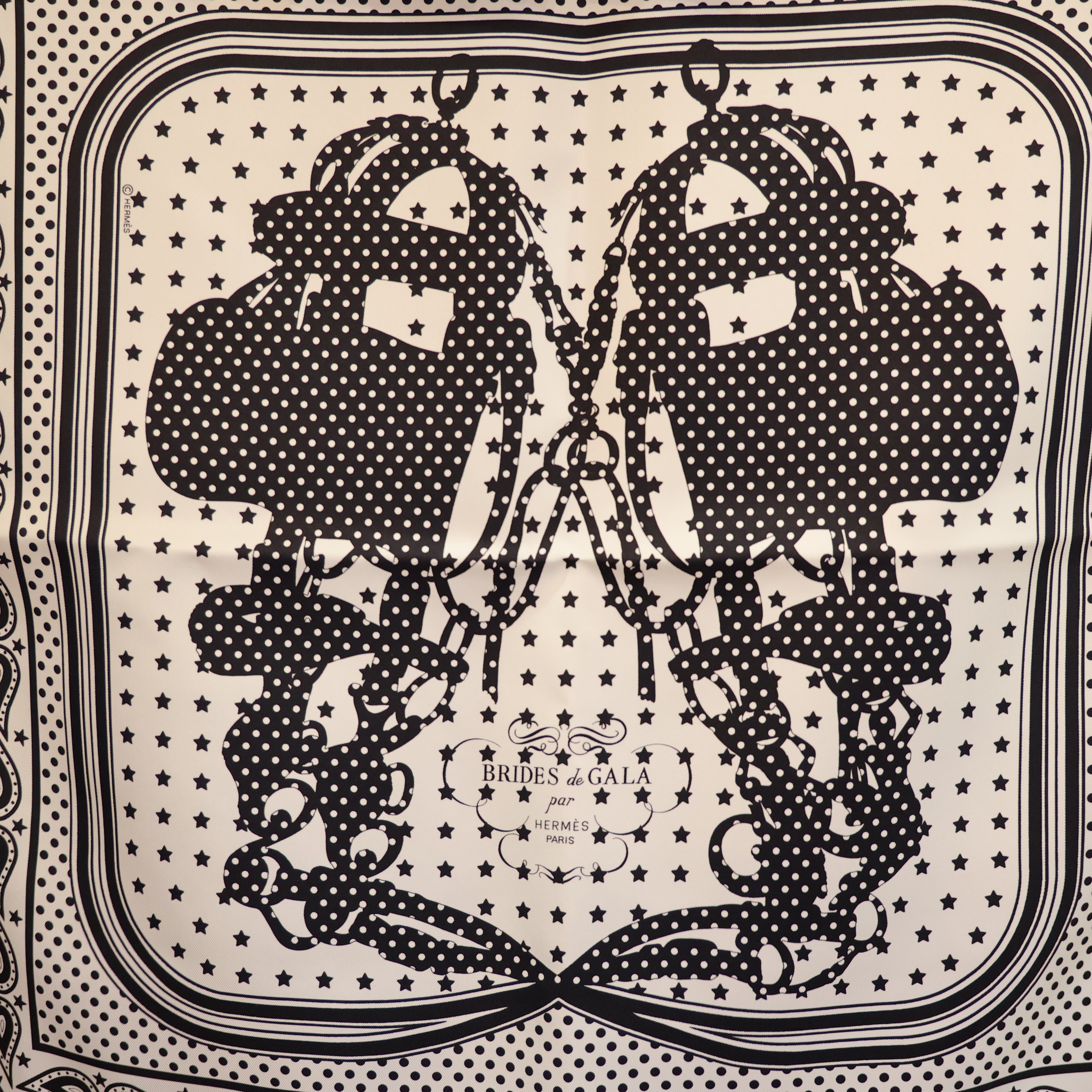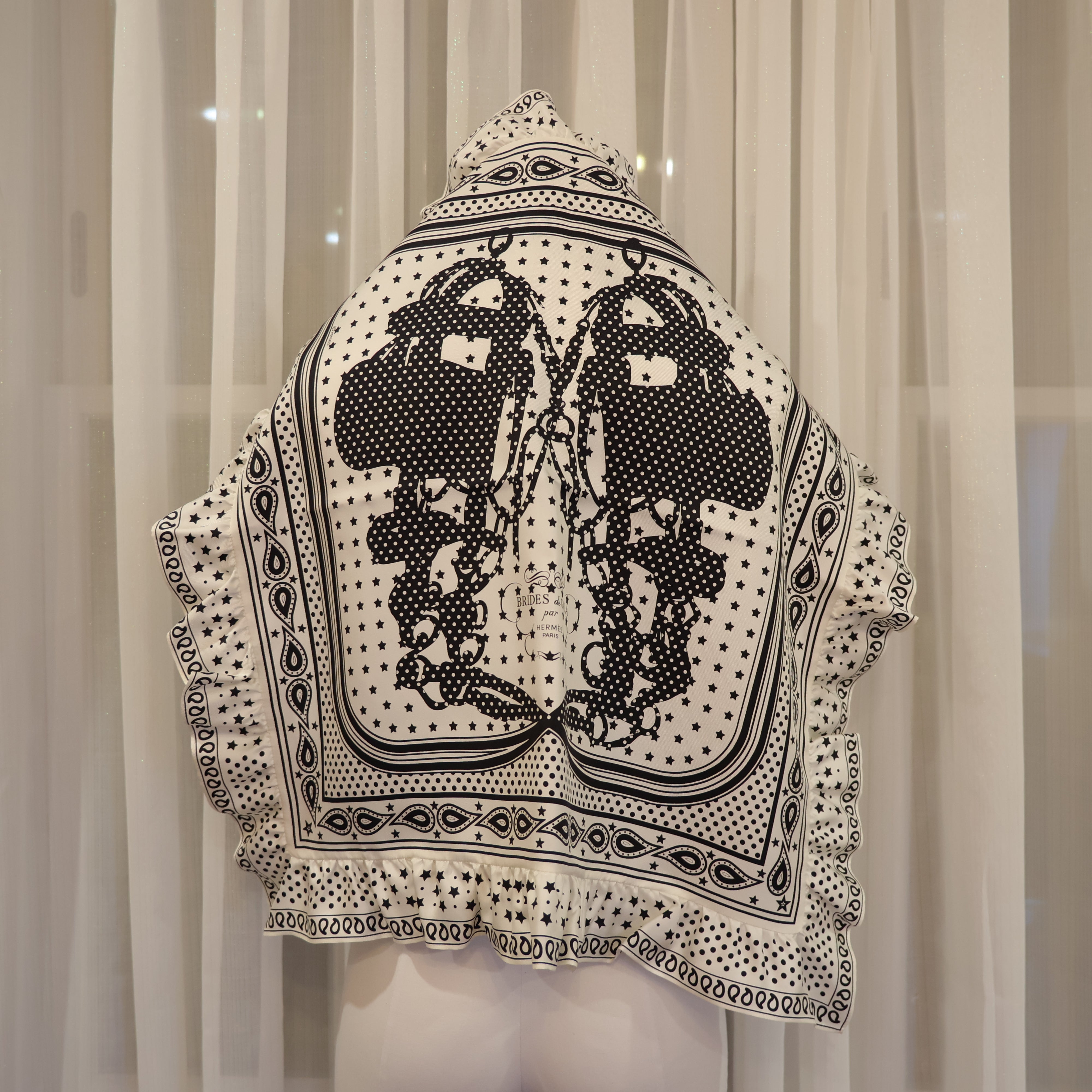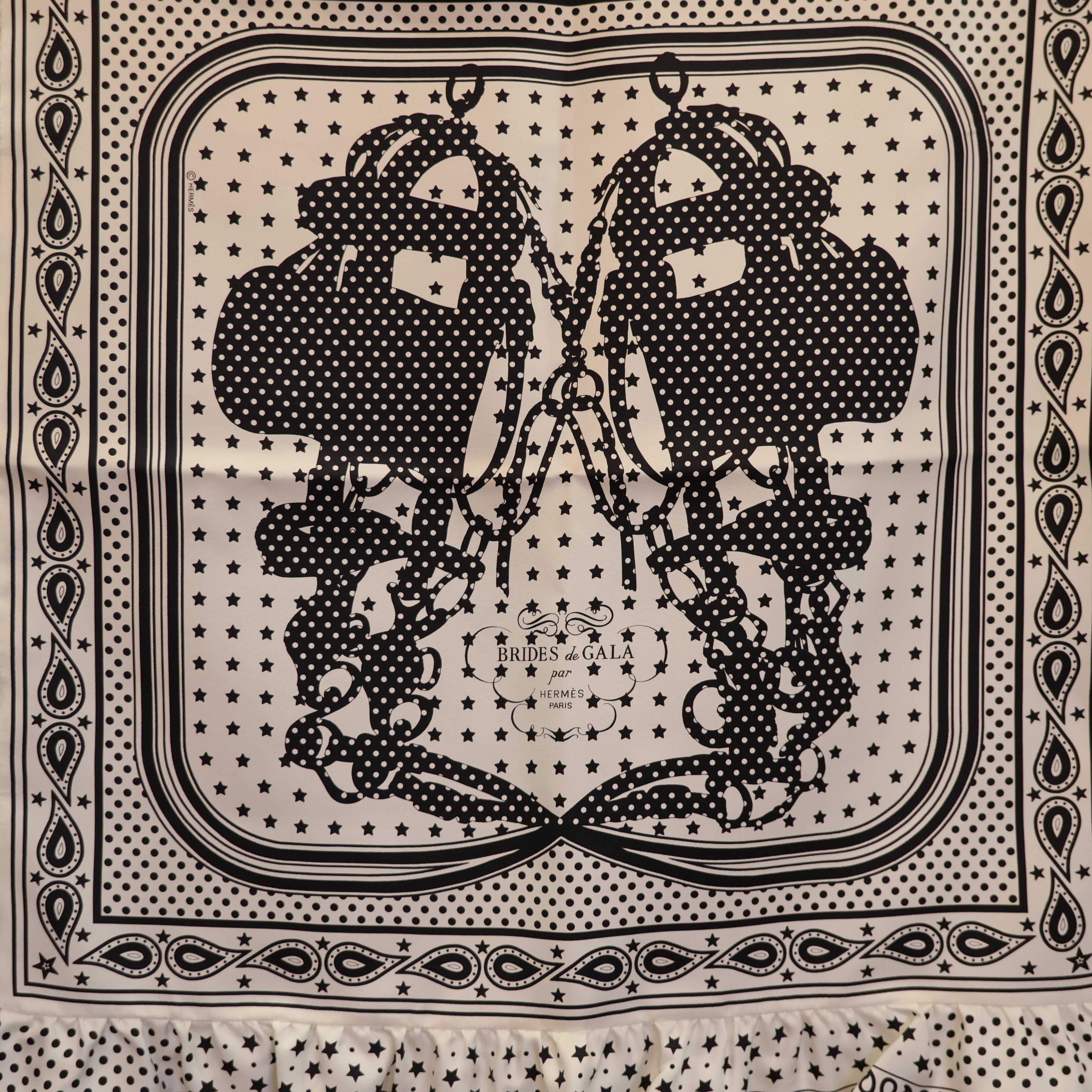 $1125 HERMES Brides de Gala Bandana a Pois scarf 70 Ruffled Trim White