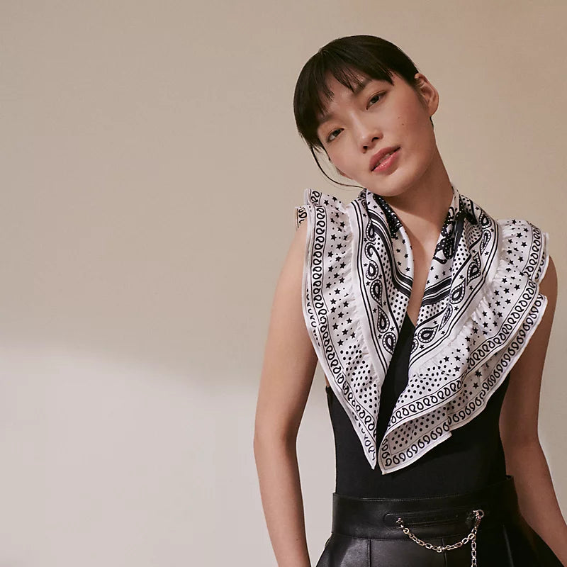 Bandana in silk twill with hand-rolled edges (100% silk).